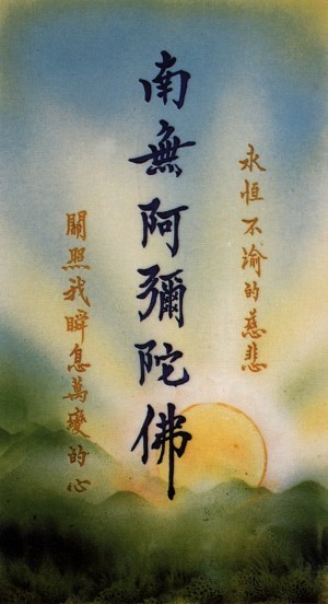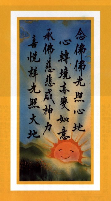 末学以前曾误以为自己是个好人,假如有人数落我的不对,一定忍不住要辩白,一直到后来静下来,才明了自己正是经典中所描述‘具诸不善’的众生,无论您骂我如何不好,我实在都比您说的更坏!而观无量寿佛经讲到第十六观时,却锲而不舍,大慈大悲地仍然给这样五逆十恶的人最后一念回心面向光明,皈向佛性的机会,佛的本怀,愿度 尽一切众生,无一漏网,愿用极乐清净庄严,更换我们地狱黑暗的深渊,只要愿舍离心中一切恶恼,至心念佛,愿生净土,于念念中消八十亿劫生死重罪,命终之时,见金莲华犹如日轮住其人前,如一念顷即得往生极乐世界!这种伟大的救度正是为了我而设的,弥陀并不是鼓励纵容造恶,而是太了解我们忍力未成就,又无智 慧化解困难的众生,在造业受苦中有太多不得已的苦衷,当末学由念佛而察觉到内心许多原不自觉的恶念时,曾经痛苦到放声大哭—不知道为什么那么凑巧,许多佛 曾慈心教诲我们不要起的恶心念,劝我们不要犯的恶言、行为,几乎末学都曾经违犯,假如有人要以嫉恶如仇的眼光来看,那么末学该被打入十八层地狱,但是弥陀的悲愿,却以如日轮般的金莲,回应至诚的回首呼唤!极乐世界实在极容易去,难的是多行恶路后而遇逢善缘;难的是积恶如山中一念回心;难的是痛苦逼迫中的至 诚心!突破了这些难,就如日出消群闇,暖阳融积雪。这些困难的突破并不须拿刀矛弓箭,只是内心一念之间的回转觉悟而已—如佛眼般垂下眼脸,反观自心而已,日日向东走,回头即是西!起一念念佛,就是我们‘和阿弥陀佛一样的清净本性’,在噩梦中已有一念的觉醒,也就是这一念已经突破了历来烦恼的重围,犹如滔滔 浊浪中忽然绽放一朵金色的莲华,这不就是—阿弥陀佛用极乐的微妙庄严来更换我心地狱的深渊吗?