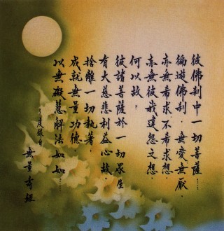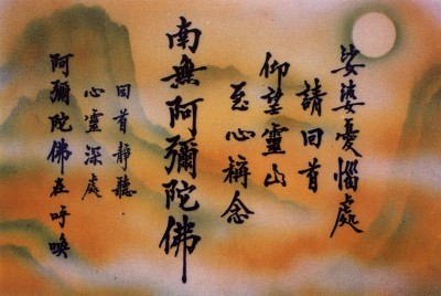 把苦痛开放成甜美的佛声。 让佛声由此土,飞到西方。 让欢喜光由这山越过那山。
