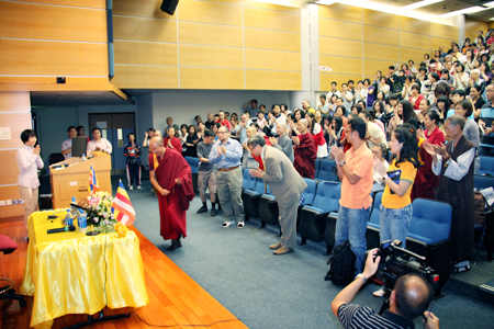 我再次谢谢各位来听演讲,也谢谢堪布来给我们演讲,我的讲话完了。好,下面请堪布为我们正式演讲——