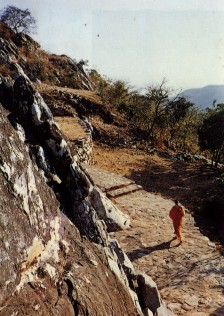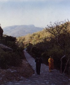 望著前面一个个朝圣者,下了山又攀上对面的和平塔,亲爱的朝圣者,当您登过灵鹫山,带著不可思议的妙法回到娑婆—