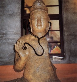 成佛的路途如此遥远,当我疲厌的时候请给我一棒,或一个微笑,随您认为妥当而给我,我都敞开心怀接受。您老人家有一个大烦恼,您的眼泪终宵不曾干涸,因为我们仍在漂泊,如果我能,让我为您分忧好吗?我愿做个摆渡人,往来在此岸与彼岸之间,虽然此河浩渺、礁石险恶,急流湍湍,然而我愿尝试,即使双臂疲惫,即使汗流浃背,只要看见您的眼睛,我又会充满勇气。帮助我,让我有勇气实践您的教义,让我永远充满‘虽千万人吾往矣’的气魄。常常,我看病、治病,大家对著我不断地诉苦,佛陀,我不是您,不能一直温和微笑,我也会疲倦,但是希望我能慢慢成长,有一天当我断臂时,但愿还能忍得住伸出另一只手来拿听诊器,如果我忘失了,请您提醒我!
