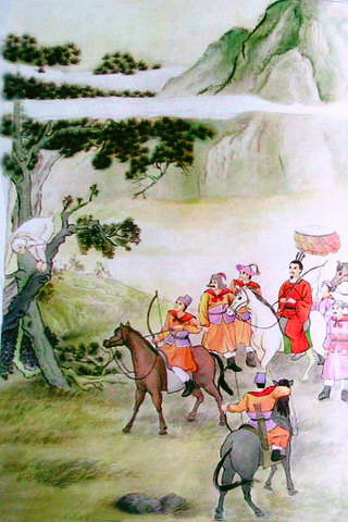 有一次随从楚王到野外打猎,遇见树上有一只老猴,楚王命养由基射杀,养由基张弓要射,猴子望见,惊慌失措,悲泪如雨。