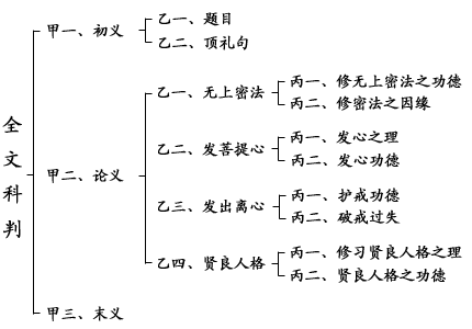 译于一九九七年三月六日 ![]() 顶礼大恩金刚上师! 为度化一切众生请发无上的菩提心! 法王的弘法过程至目前为止分为五个阶段,并以不同阶段所作的窍诀教言作为分界标志。其中的《忠言心之明点》与《教诲甘露明点》已经译成汉文,现在上师又垂示了《胜利道歌·天鼓妙音》,标志着第五个弘法时期的开端。这三个教言的内容,大致相同,都强调了戒律,又强调了人格。《忠言心之明点》和《胜利道歌》还着重宣说了密宗的功德。 法王在前段时间的弘法过程中,遇到了很大的违缘,最终以三宝的加持,遣除了一切外、内、密的违缘,这时法王心中自然显出了这个《胜利道歌》。这也标志着在法王将来的弘法过程中,已不会遇到重大的违缘。法王这个《胜利道歌》,并非由分别念所造,而是在诸佛菩萨的加持下,智慧中的自然流露。因此,我们所有的弟子修学这部论,必有相当的意义和加持。法王要求我们以后在每讲一个法时,在开始的第一天,最好把《胜利道歌》讲解或读诵一遍,如此便能遣除整个传法过程中的违缘;如果发心去求法,先诵一遍《胜利道歌》,也能顺利实现愿望,而且不会受到邪魔外道的障碍或遭遇其他的违缘;在学佛的过程中遇到困难或违缘,通过读诵这首道歌,或者将其带在身上,也能够转变成顺缘。 法王一再要求凡是皈依、依止他的人,必须把《胜利道歌》背熟,而且要精通其含义,如此对我们一生都能产生很大的利益。释迦牟尼佛所传的八万四千法门,我们要娴熟精通颇为不易,而法王通过自己的修证,已归纳成这个殊胜的窍诀,所以大家一定要珍视。 《胜利道歌》从论首的顶礼与上师无别的文殊菩萨,及强调时时以信心祈祷上师开篇,到论尾回向往生西方极乐世界为结束,中间共开示了四个修法的要诀,即:欲想尽早获得正等觉佛果,必须修学无上的大圆满法门;而大圆满依靠什么来成就呢?发大乘菩提心;此又需要依靠什么呢?出离心;而出离心的基础是什么呢?即需要一个秉性善良的人格,这是从学处的角度讲的。如果从戒律方面理解,即欲速捷成佛度生,则应趣入无上密乘,为此,首先要受持密乘三昧耶戒;此之前提,须先具有菩提心,而菩提心必须要依靠菩萨戒;受持菩萨戒须先有出离心,出离心必须依靠别解脱戒(小乘的比丘戒、比丘尼戒、沙弥戒、沙弥尼戒、正学女戒、优婆塞戒、优婆夷戒);推寻到最后归结为人品,因为一切戒律,都须建立在贤良人品的基础上。这四个要诀,是显密一切法门凝结成的精华,是成佛的必由之路。 《胜利道歌》从窍诀方面讲,与宗喀巴大师的《三主要道论》相类似,都论述了修道的要点,其共同的是出离心和菩提心,不同的是在无二智慧上。《三主要道论》讲述的是中观,而《胜利道歌》讲的是无上大圆满,此外《胜利道歌》还特别强调了人格。在风格的差异上,《胜利道歌》是从大圆满到人格的逆向式推理,而《三主要道论》是讲从出离心、菩提心到中观的修学次第。 本论分三个方面:甲一、初义;甲二、论义;甲三、后义。 甲一分二:乙一、题目;乙二、顶礼句。 乙一、题目:胜利道歌·天鼓妙音 自从法王如意宝开珠日神山的伏藏大门的缘起被破坏以后,整个学院遇到了很多的违缘,尤其在法王前期的弘法利生当中,遇到很多内、外、密的障碍,最后由上师和三宝的加持完全遣除了一切违缘,在庆祝胜利的时候,法王唱出了这首道歌。“道歌”是在修证上面得到证相后,自然唱出的歌。“天鼓”是三十三天因天人的福报而显现的一面大鼓。在天人与阿修罗打仗之时,天鼓自然响起,并发出“愿一切天人胜利,愿一切非天消灭”的声音,所以在这里把道歌比喻成天鼓的声音。 乙二、顶礼句: 这里是顶礼文殊菩萨。在1987年法王带领弟子朝礼五台山以前,法王所造的论典都首先顶礼麦彭仁波切。自从法王去五台山,见到了文殊菩萨,得到了《忠言心之明点》和《文殊大圆满》这些窍诀法以后,所作的论就经常顶礼文殊菩萨。 怙主诸佛智慧身,文殊室利童子尊, “怙主”是一切众生的唯一依怙处,也就是诸佛菩萨,而十方所有佛菩萨的智慧总集身,就是文殊师利童子圣尊。这里把自己的心比喻成一朵八瓣莲花,花瓣中间有花蕊,而文殊菩萨就像太阳,祈请您的光芒照射到我心间的莲花中,请您恒住在莲花的花蕊中。即祈请上师文殊菩萨时时刻刻加持我的身口意,加持我的智慧,使我的智慧和您的智慧融为一体。 “所言愿利诸有情”,法王愿此文所述的修行窍诀能利益普天下的一切有情。法王在讲解此道歌时指出:不仅按《胜利道歌》的要诀去学去修,即使只听到念诵的声音或只触碰到法本的人,也都将得到利益。法王也愿他们都得到暂时的人天福报,并究竟证到无余涅槃的境界。 甲二(论义)分四:乙一、无上密法;乙二、发菩提心;乙三、发出离心;乙四、贤良人格。 乙一分二:丙一、修无上密法之功德;丙二、修密法之因缘。 丙一、修无上密法之功德: 甚深光明大圆满,仅闻词句断有根, “光明大圆满”是一切显密经藏、论藏的精华。因其非常深奥,一般的凡夫难以通达其密意,所以称其为“甚深”。 仅闻无上大圆满密法的词句,即使没有发心修持,也能断除此生、中有或后世的三有轮回之根。胜喜金刚曾说过:“此《胜喜金刚续》,见者得解脱,闻者得解脱,触者得解脱。”不但人类,即使是其他如地狱、饿鬼、旁生中的众生,听闻之后,也都能得