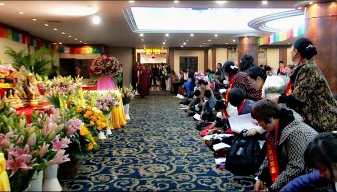 可是,现在人类社会在物质上越来越有发展,越来越有进步,在精神上却一年比一年下滑,一年比一年倒退。虽然商场上有琳琅满目的商品,但这只增长贪欲等烦恼,让人们处于快乐、宁静、祥和的状态,是相当困难的。中国是这样,加拿大是这样,美国还是这样。虽然大街上来来往往、熙熙攘攘的人流,购买外在的衣服、食品等很容易,因为百货商场等一直开着大门;可是,人们最需要的大悲心和大智慧,这种内在的精神食粮和精神财富,有多少地方能请到啊!