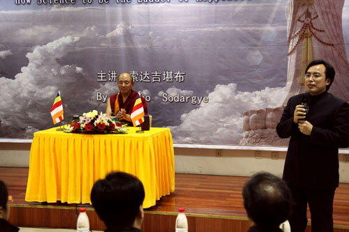 今天非常荣幸也非常高兴地邀请到了四川喇荣五明佛学院汉僧部的首席指导老师索达吉堪布,进行一次有关佛教与科学关系的演讲。演讲过后,我们会留有一个小时的时间,给大家进行问题的交流。