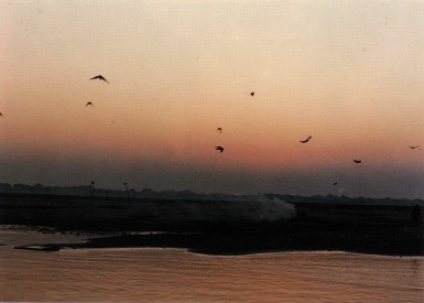 恒河边,一群包著头布的女人,抱在一起哭泣状,声音好大,却没有眼泪,是办丧事吧?恒河边由喜到丧都有,令人弄不清楚。事实上,您想想何忧非喜?又何喜非忧?那一件喜事不是丧事的开端?那一件丧事又不是喜事的开端?又何必弄太清楚,又怎么能弄清楚?走过了恒河,回到车上,等著凑齐人数,我不愿意说‘有人走失了’这种词句,因事实上,我们都是走失的人啊!我们谁又不是走失的人呢?但是我们也都会归来,在这不具时间观念的地方,等待也是一种乐趣,等待并不紧张,等待是观赏也是学习,在这个好拥挤又好悠然的地方......。