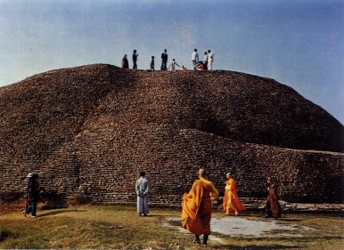 化骨塔是一座小丘,这是佛陀的荼毗之处。天空是灰色的,我远隔著树,望著同行的人攀上那座小丘(化骨塔),在丘上诵经,我这流浪的孩子,不禁想起当年阿难的哭泣。这天的行程如此的匆忙,匆忙得来不及缅怀就要离开了。