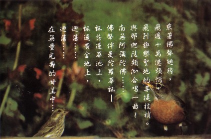 晨雾香云里,绕佛说阿弥陀经说法台,诵念佛说阿弥陀经