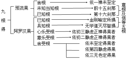 信等五根、意根、心乐受根、意乐受根、舍受根,此九根在见修无学道中依次是未知当知根、已知根与具知根之本体。