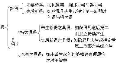 有部宗是如何承认的呢?欲界烦恼心现前时,可有六种心重新获得,即转生于欲界的不善心、有覆无记心、俱生善心,以及依于欲界烦恼心而使阿罗汉果退失时,无色界、色界的二烦恼性心可以现前,还有原来阿罗汉的无学心在退失之后,有学心已经现前。但是,有部宗认为,此六心并非同时产生,如欲界阿罗汉,他在退失后,色界、无色界的二烦恼心以及有学心,可以同时现前,而当一个众生转生于欲界时,欲界的不善心、有覆无记心及俱生善这三种心可以同时得到。因此,在这里应该分开两种情况,并不是一位阿罗汉退失,则上述六种心均可得到。实际上,此颂所说的重新现前之心,也只是从得绳方面说的,否则以理观察不能成立。