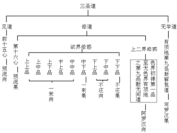 注:1无垢地至法云地属修道所摄,彼诸共同修法为八圣道(此分法依据大乘《俱舍论》与《现证庄严论》。)