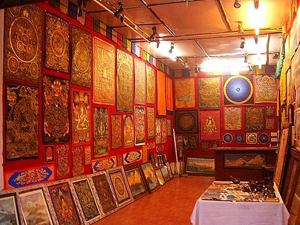 我跟着善觉师和乐新走进加德满都泰米尔区的这家唐卡店,店主热情极了。