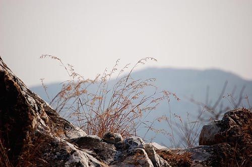 一直以为灵鹫山的说法台应该是一处宽阔之地,没想到它的面积非常狭小。但说法台面对着的空旷山野却是石林交错,层峦叠翠,有高屋建瓴,势不可当之感。释尊在世时鹫峰四周曾遍布城池,从说法台望去,可见国王、大臣及民众们居住的房子;人们在城中抬眼一看,也能望到高高的山峰上佛在说法。于此处临虚长啸,便有空谷传音,绕梁三载之思,更有“妙高峰顶,不容商量”的心境。