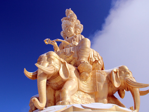和那两个姑娘道别,我还有点恋恋不舍,她们大概是菩萨派来的空行吧,否则我心里怎么这么愉快呢,我对自己说。我找到了一间旅社,这里比酒店要便宜一些,而更重要得是,这里有一些房间正对着普贤像,方便我晚上的祈祷和修法。天色已晚,我选择的余地并不大,只剩一个房间对着普贤像了,虽然是个“标准间”——这小旅馆里最贵的一种房间,我没有犹豫就定了下来。
