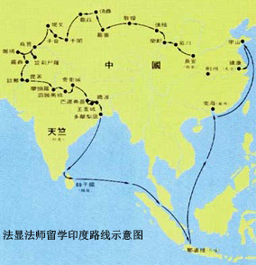 法显法师于东晋安帝隆安三年(399年),由陆路涉沙漠,徒步赴印,至义熙十年(414年),由海路冒险乘船归来,前后足足十五年。在中印交通阻塞,西域小国众多的当时,长途旅行中的困苦艰险,是难以想象的。法显法师俗姓龚,家住平阳(山西临汾境内)的武阳。他的父母在法显法师仅三岁时,就把他送到附近寺院里做“小沙弥”。