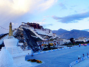 “看,布达拉宫”阿卓指着窗外。雪中,那高大巍峨的宫殿静静的矗立在那里,俯视着这个仍在睡梦之中的城市。