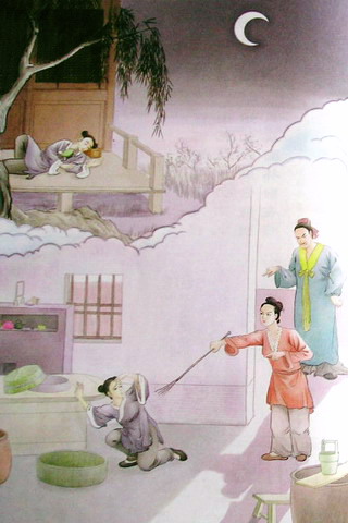 后来有一次,厨婢感染瘟疫,发高烧,病得奄奄一息,主人怕她死在屋里,把她抬到池中水阁里,等待命终。