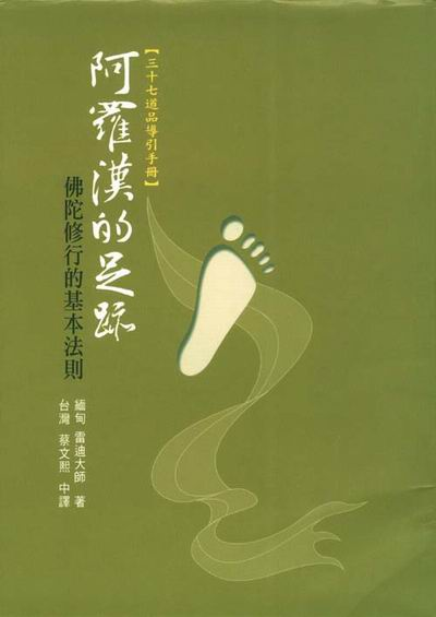《阿罗汉的足迹》:《三十七道品导引手册》(Bodhipakkhiya Dipani),系译自缅甸雷迪大师(Ledi Sayadaw 1846—1923)《佛教手册》第八部份。 本书原名为:《Bodhipakhiya-dipani》,英译本共有两种名称,一为缅甸版的《菩提觉支手册》(1965),一为斯里兰卡版的《菩提的资粮》(1971),而马来西亚的长命法师则中译为《三十七菩提分》,本书的中译本在《嘉义新雨》连载时则译为《三十七道品导引手册》,如今改用《阿罗汉的足迹》为主要书名,是兼顾了本书所陈述的阿罗汉圣者境界,便於一般性读者了解与阅读。