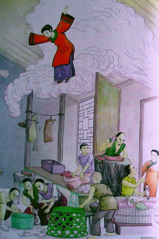 这时,小婢送进食物说:“鱼圆已煮好,夫人可用早点了。”夫人惊魂稍定,却立刻命小婢端出去,回想梦境,不觉汗如雨下,于是命罢宴席。