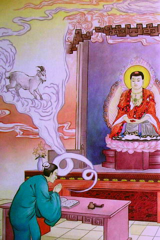 县令好奇询问是何因由?潘果取纸书守,照实回答,县令一时为使他觉悟,警惕潘果,教他虔诚书法华经作功德,为羊超荐,潘果遵照县令所劝,发心敬信,每日斋戒虔诚写经、诵经、从不间断。