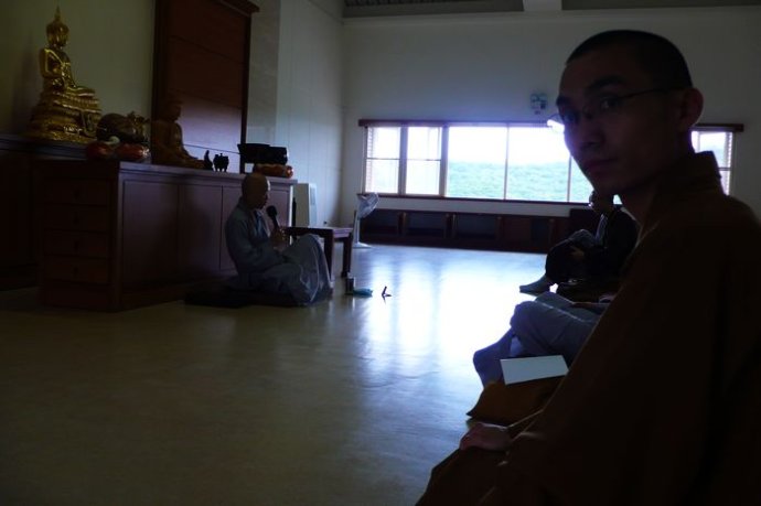 到第二天下午,整个禅五就快顺利圆满了,佛教学院校长惠敏法师也到禅堂来了解大家禅修的状况,顺便给大家解释一下采用“期初禅五”的原因以及明天开始的一个到南部的校外教学活动。他说: