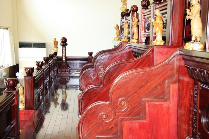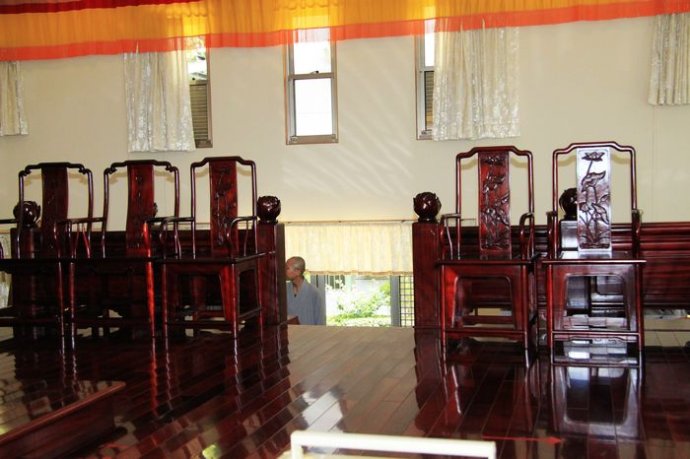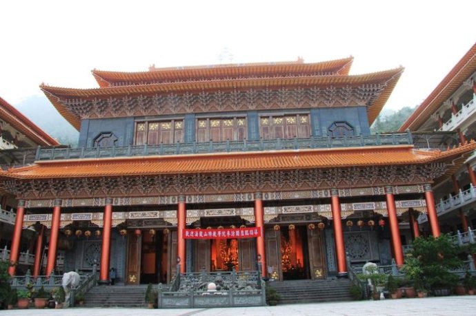 离开妙法寺,我们前往香光寺参观。然后,我们晚上赶到三宝山灵岩禅寺,入住在这所位于嘉义县内东隅竹崎乡桃源村的禅寺中。寺院建在一处山岗上,山坡陡峭得连车都难以直接开上去,我们步行上山,能感到略微的寒意,可想而知这里的海拔还是比较高的。灵岩禅寺有一所建设得很庄严的禅堂,天花板上还专门雕塑有飞天的形象,四周墙壁上小佛龛围绕,显得富丽堂皇。赶了一天的路,大家可能都累了,晚上大家自由活动,有些人也在这所禅寺的禅堂中打坐,体验了一下这里禅堂的氛围,而一部分人则选择早早地休息,想着参加明早的早课和早坐。