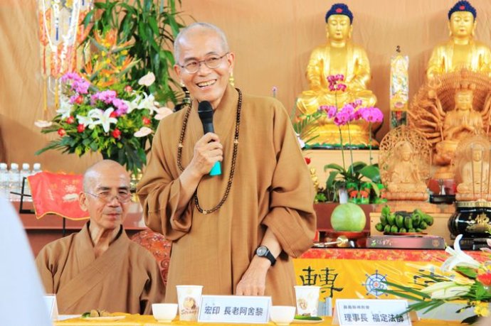 讲到我们汉传佛教,感触很多,大概在今年五月份,我见到了一个捷克人,练气功法门。他在台湾新竹带禅七,他来到我的精舍,我问他你有何高干?我那个精舍来两个游览车没地方坐的,一台能容得下就不错了,两台绝对爆满。我出家虽说四十多年了,很惭愧,自己的福德因缘不够,没有盖庙,一直住精舍而已。那位捷克人说现在南传的、藏传的、汉传的,讲实际修行的体系,南传的有、藏传的也有,汉传的就没有了。我问他:你知道印顺导师没有?他的著作你有涉猎过没有?他说我有看过。我问他印顺长老也没有修学体系吗?他说也没有。他让我想到法鼓山的开山圣严长老,他(指圣严法师)在日本读博士,我们的校长(指惠敏法师)也是博士,但是我感觉到的圣严长老要重新振作汉传佛教的那种精神,重新要恢复和光大汉传佛教修行的东西,这样的用心、这样的努力,大家有目共睹,所以未来的社会会越来越认识到汉传佛教的价值。在西方社会,要想将佛教的思想发扬出去,需要我们去努力,尤其是法鼓山惠敏校长,责任重大。我看到现在法鼓山惠敏校长、果东法师、果晖法师,这么多优秀的法师,这么多优秀的年轻人。汉传佛教真的要恢复和建立,真正是要努力恢复僧团制度。像我这样没有办法建立僧团,太虚大师认为佛教的复兴最终要落实到僧团,印顺导师认为将来的汉传佛教的恢复需要有一个稳步和合的僧团:比丘的僧团、比丘尼的僧团,在教证上一定要能够和南传与藏传对话,光大汉传佛教。今天就简单介绍到这里,以后有因缘再和大家交流。招待不周,还希望多多包涵。”