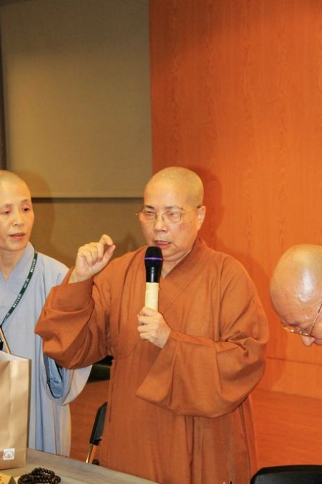 “我们县佛教会的理事长,妙法寺的开山和尚,法鼓佛教学院的校长,华藏净宗学会的理事法师们,大家到这边的各位法师、居士,阿弥陀佛!