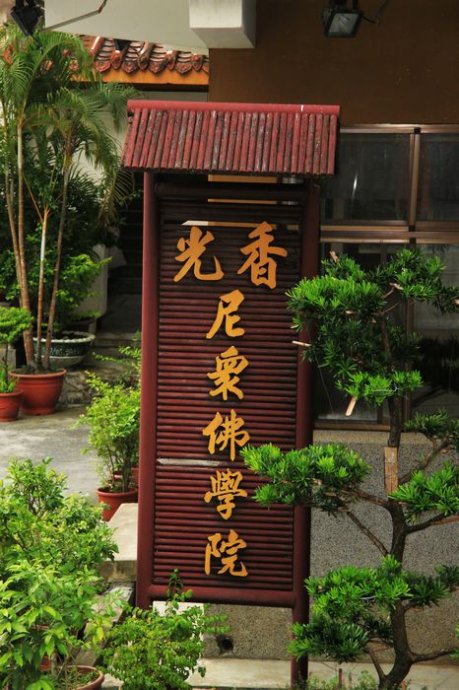 2009年9月19日下午,我们参访香光寺,也即香光尼众佛学院。该寺位於嘉义县竹崎乡內埔村的山间,在台湾的尼众道场中,是很有特色的一所。她们在教育和图书馆的整理与管理方面非常突出,有些事业还涉及到了高等教育。香光寺原名金兰寺,1975年由时任住持的心志法师改名为“香光寺”。悟因法师继任后,注重尼众僧团的教育事业,特别在1980年创办佛学院,称为“香光尼众佛学院”,一直延续到今。我们一行人到达香光寺时,寺里的比丘尼法师们早早地出门迎候,我们跟随进入,到大殿礼佛,然后分别参观寺院建筑。香光寺所处位置不大,办公场所甚至稍显简陋和拥挤,后面的大殿外观是一座台湾典型的神庙样式,讲解的自衍法师告诉我们:香光寺早期只有这个神庙,后来陆续在两边建房,形成了如今的规模。