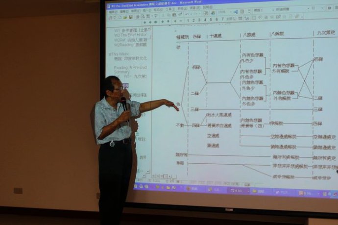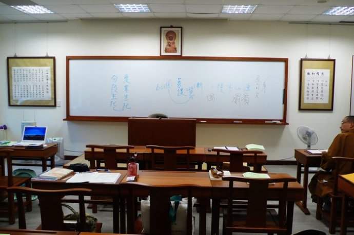 9月28日例行交流时,贤世法师说:“上午第二节课,我上《电子佛典导读》,杜正明副校长教的。这一节课讲电子佛典的目录与《大正藏》编目的同异,并将一些经目进行对比。下午上《汉传佛教史》,蓝吉富教授教的,挺幽默的。我在大陆看过一篇论文,对他评价挺高的。他说他教了三十年的书。这一节课主要对汉传佛教的来历作了简要介绍。”
