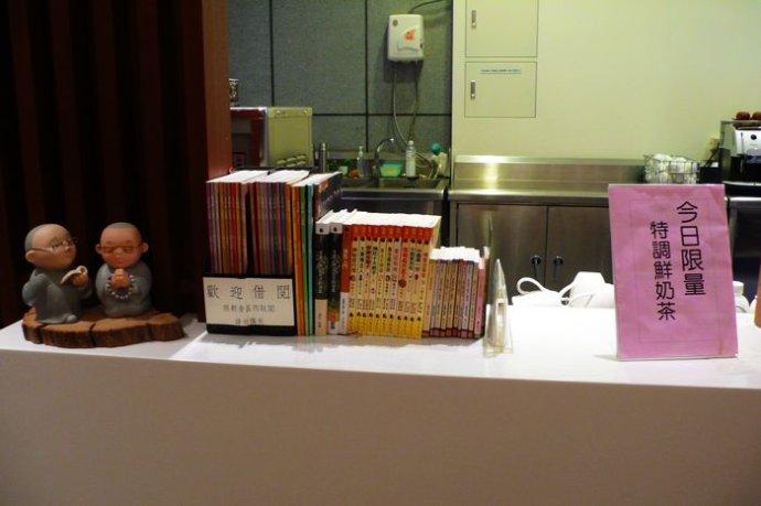 接下来,我去了解了客堂。我到轻食区,刚好知客师在那里,也是女众。行愿馆这一块儿都是女众在做。对法鼓山事务的承担,男女众一般是分开的。客堂分了几块儿:一个是知客处,主要是接受供养,提供法会、活动等事项方面的查询,或者基础佛法的咨询,以及对个别访人的综合介绍。轻食区也属于客堂,免费提供一些饮料和点心。客堂不负责挂单住宿。挂单住宿属于百丈院管理。小的道场就由客堂统管了,这里庞大,所以分开管。