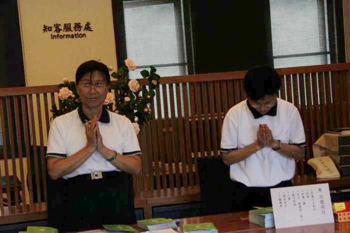 我还去看了参访室。参访室和义工室都是独立的部门,但都由大普化的系统来统筹。参访室是来访人的引导、介绍,但不对个人,只对团体,而且一般是要预约的。在这里工作的义工要专门培训,因为要对整个法鼓山的建筑、历史和理念等情况很了解。比如我们刚来时参观法鼓山园区,给我们导览的就是这里的义工。