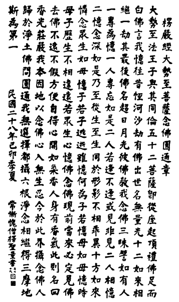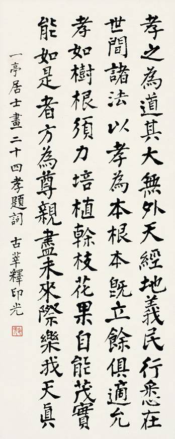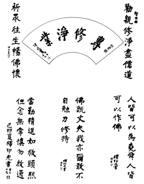 印光大师为近代净土宗中兴之祖,其思想集历代净土宗教义之大成。他所说 “敦伦尽份,闲邪存诚,诸恶莫作,众善奉行,真为生死,发菩提心,以深信愿,持佛名号”的基本教义契合时代需要,完美地传承了儒、佛两家文化的精髓。大师的嘉言懿行不论对和谐社会的建设,还是家庭和睦和个人修身养性都极具指导意义。