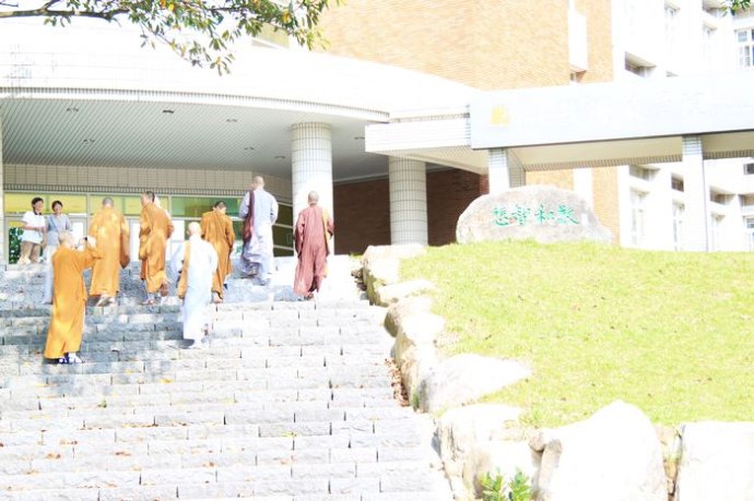 每天的生活基本上都是这样,周末会休息。其中周三下午的时间是全校时间,如果有一些全校性的活动的话,就会安排在这个时间举行。我们在的时间中,一年一度的“创办人时间”正好在2009年9月30日进行了,那天刚好是周三。以前圣严法师在时,这天他会和大家见面,作开示,给大家鼓励。今年是果东方丈作开示,然后也是中华佛学研究所的原所长李志夫退任,法鼓山果境法师新任所长的宣布日。