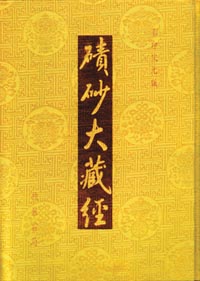 《碛砂藏》,平江府碛砂延圣院大藏经。延圣院在今江苏吴县陈湖,后改名碛砂禅寺。约在南宋宝庆至绍定年间开雕;端平元年(1234)编定并刻出天字至合字548函的目录。宝佑六年(1258)以后,因延圣院火灾和南宋垂亡,刻事曾中断30年。元大德元年(1297),由松江府僧录管主八主持,又继续雕刻,到至治二年(1322)竣工。全藏编次从天字至烦字共591函,1532部,6362卷。由于经过两个朝代的更叠和兵燹,原刻版片部分毁损,另用其它散刻本补充。因此后来的印本中夹杂元代寺院所刻的补本,甚至还附有翻刻的《普宁藏》数函在内。现存的陕西开元寺和卧龙寺的全藏(略有残缺),是在明洪武二十三、四年(1390~1391)间刷印的。1931~1935年时,曾用这部藏经影印过500部(缺失者以资福本、普宁本、景定陆道源本、亦黑迷失本和永乐南藏本等补入)。影印本《碛砂藏》共60函,593册(经文59函,591册,目录1函,2册)。 全藏中函卷不详而经名缺佚者还有 ll卷尚未补入影印。后据美国普林斯顿大学的葛思德东方书店所藏的明代补抄配本《碛砂藏》和《洪武南藏》本查对,已有9卷经名核实。