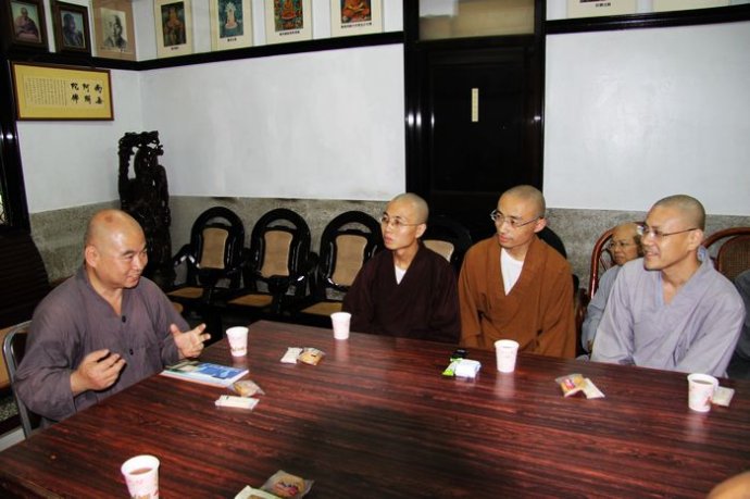 这几天有新闻说,台湾最近中秋前后会有一场台风经过,早上起来时天比较阴沉,似乎要下雨。我们到了承天禅寺,寺里的法师们告诉我们:早上还在下雨,我们到前刚好停了。看来我们参访的顺缘还相当的好,我想这或许是我们几个人都在心中怀着对广钦老和尚无限敬仰的希求的感应吧。寺里的常住法师们出来接我们进大殿礼佛,然后到旁边的小客厅,忙碌中的方丈和尚道等法师正在客厅等待我们一行人的到来。