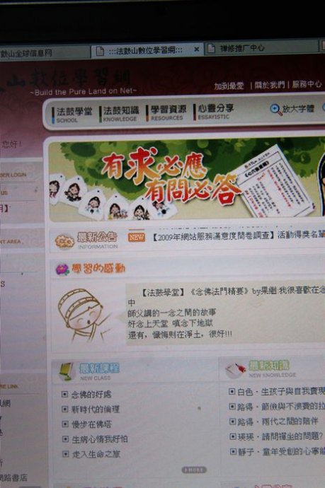 对“法鼓数位学习网”(http://www.dharmaschool.com/ddm_max/index.php)的介绍说:“创办人圣严法师曾于1995年提到:“任何观念、任何风气的培养,希望保持其热度不退,都需要不断地再三传播,反覆地加深印象,才不致很快地被社会大众淡忘。因此,佛教的弘法工作,也就不能不跟上时代的脚步,甚至要带动时代的风向。”