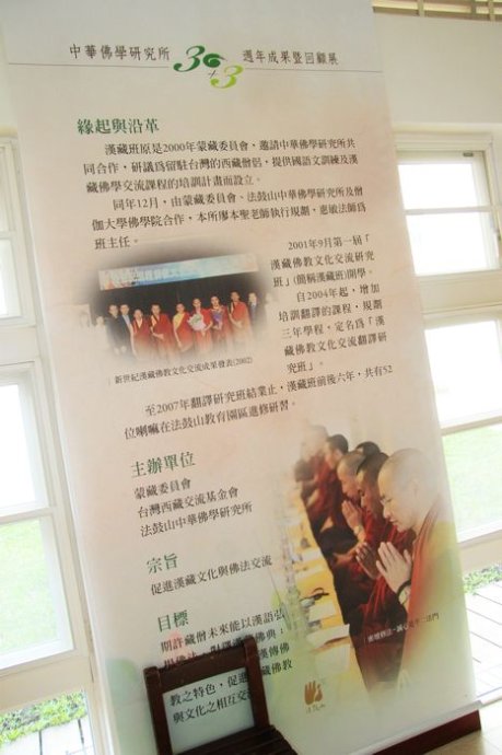 2001年起,法鼓山中华佛学研究所,受蒙藏委员会之托,承办“汉藏佛教文化交流研究班”,首开“汉、藏僧侣同修”先例,建置汉、藏佛教与文化交流平台,希望透过学习与互动,加强彼此文化与价值的理解,使来此学习的西藏僧侣,将来能用中文弘扬藏传佛教,增进两地人民的情谊。