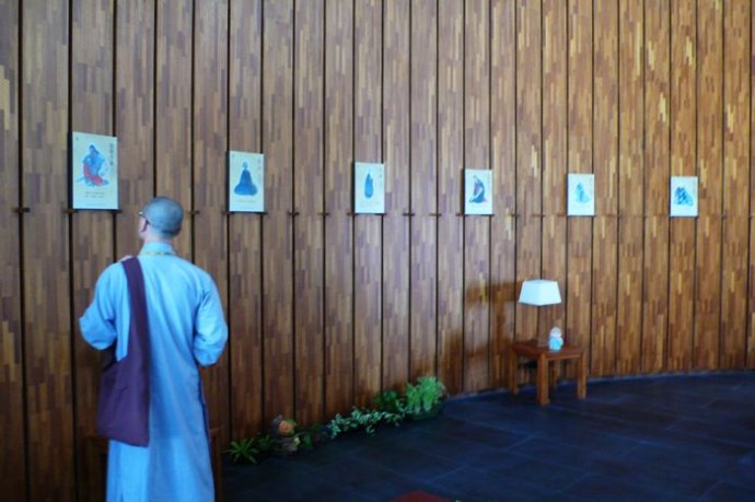 在办公室拐角楼梯间的海报栏上贴着两张打印纸,上面大字写着:“祈愿汉传佛教永续传承!长长久久抚慰人心,世世代代为人类点亮明灯,灯灯无尽……”我心里很受震动,感佩于圣严法师的悲愿,也更加体念师父对八宗并弘、建立汉传佛教修学体系的倡导。
