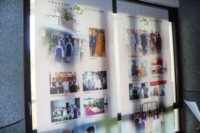 先参观楼内的“中华佛学研究所三十年暨法鼓佛教学院三周年成果展”。展览分11个部分:圣严法师专区、护法法师及义工菩萨区、校史简介、汉藏班专区、学术活动成果区、图书资讯馆区、历年客座指导教授区、佛研所师生区、筹设法鼓佛教学院过程资料、法鼓佛教学院、推广教育中心。展出时间是2009年6月13日~8月31日。现在正式展出已经结束,撤掉了一些展板,但还剩下一些可供了解。