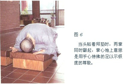 再说入三门时,不要随便由中门或中央直入,用边六时,若由左门入则以左脚先入,由右六入则以右脚先入,任何殿堂都一样,除佛像、经籍或供佛物品外,余物不得随便携入。在殿内,眼睛不得左顾右盼,心中要专一诚敬。一举手,一投足,一拈都可以看得出你有没有受过佛门教育、有没有师承。