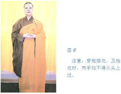 首先要注意,不要在大殿前或大众跟前穿袍披衣是;香港地方小,若没有其他合适的地方,就要选不是正殿佛前来穿搭。