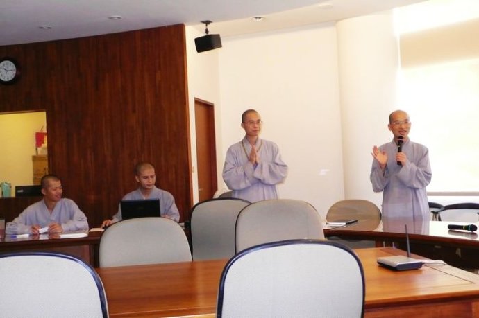 9月16日上午在法鼓山教育行政大楼,男众学务长常惺法师介绍完法鼓山僧伽大学的课程、组织、作息,然后请有关执事法师和禅学系学僧的分享心得。
