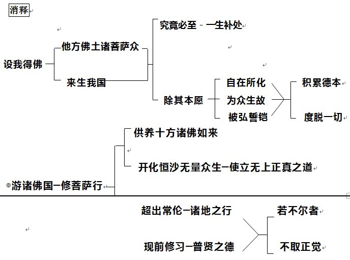 设我得佛,他方佛土诸菩萨众,来生我国,究竟必至一生补处,除其本愿,自在所化,为众生故,被弘誓铠,积累德本,度脱一切,游诸佛国,修菩萨行,供养十方诸佛如来,开化恒沙无量众生,使立无上正真之道,超出常伦诸地之行,现前修习普贤之德,若不尔者,不取正觉。