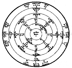 十二、依阿毗达磨,支撑地球表面的是一个金轮,约好几千由旬(yoina,约为九哩)厚。一个一百六十万由旬厚的风轮则又支撑着金轮。而支撑风轮的是一百二十万由旬深的水轮。