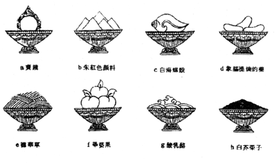 八、1.花,2香,3.酥油灯,4.香水,5:食物。