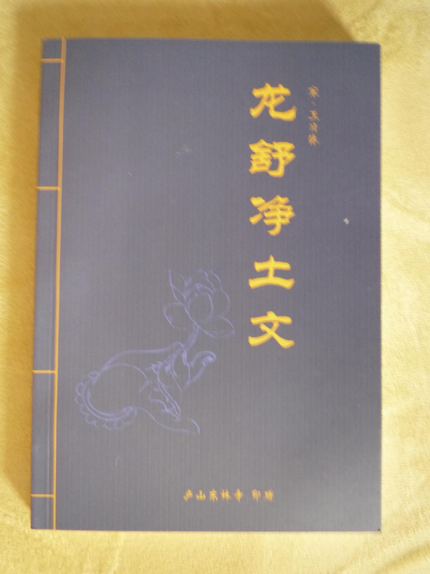 王日休居士(?~1173),字虚中,龙舒(今安徽省舒城)人,故以龙舒名其文。是书集录有关往生西方净土之经论、传记等,原著10卷,即《净土起信》、《净土总要》、《普劝修持》、《修持法门》、《感应事迹》、《特为劝喻》、《指迷归要》、《现世感应》、《助修上品》、《净浊一如》等10章(一章为一卷),後人增广为十一卷或十三卷,嘉禾僧卺〔jǐn ㄐ〡ㄣˇ〕改为十二卷,即今现行之《龙舒增广净土文》。