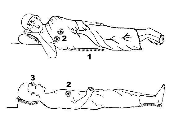 1‧观察任何标示(1)处接触床面的感受。正念于其中一处。