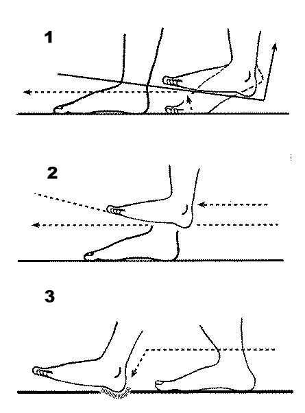 2‧站时,两脚张太开。举足时,脚指指向外侧。