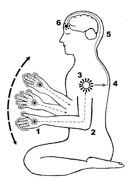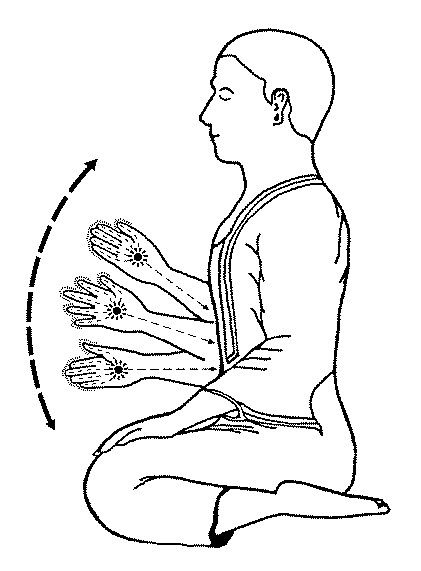 第二图:当移动前臂上下时,正念于掌心或指尖。